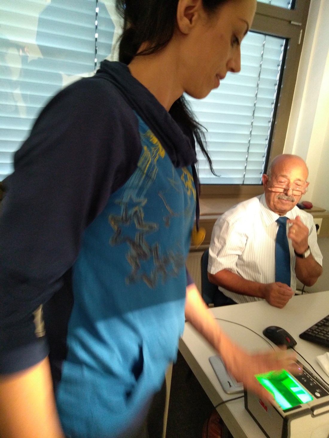 Ich hatte biometrische Passbilder mitgebracht, die ich kurz vorher, professionell wie immer, in einer Fotokabine am Bahnhof gemacht hatte. Aber es mussten nochmal zusätzlich welche geschossen werden. Fünf Bilder für einen einzigen Ausweis ist schon krass!