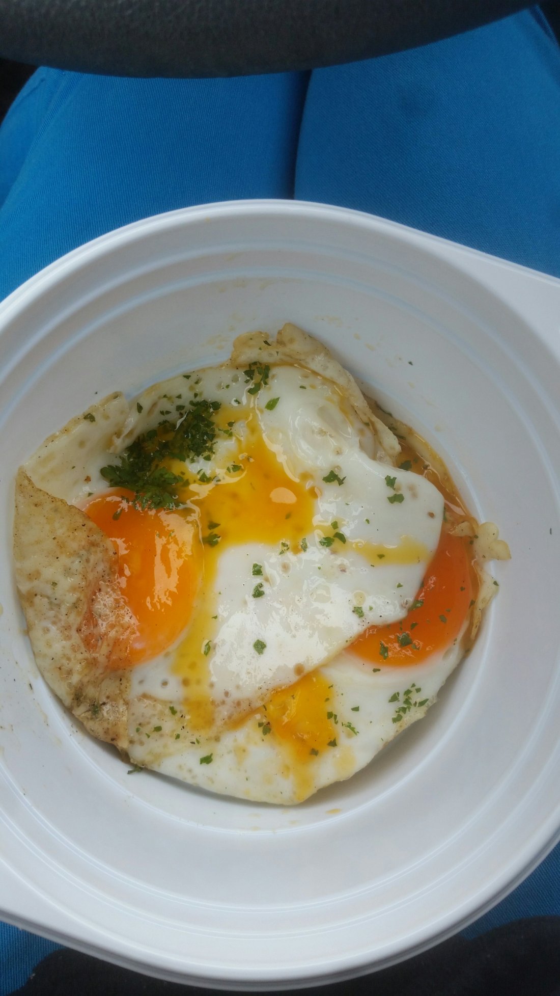 Doch dann fand ich wirklich noch etwas Essbaren für mich!  🤗 Spiegelei mit nix!! 😋 Überall am Gemüse war Zucker dran. 😕 Hab mich so über die Eier gefreut, dass ich gar nicht mehr gefragt habe, in welchem Öl sie gebraten wurden.🤔😅